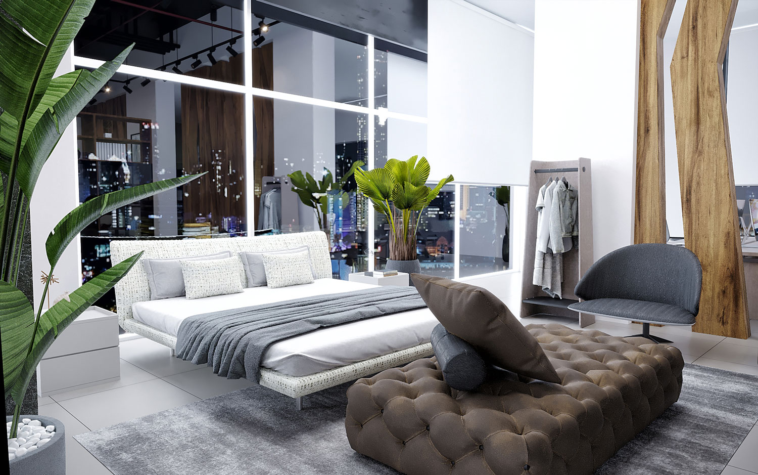 Rather than a conventional retail space, the showroom is conceived as a series of refined living scenarios, including living areas, bedroom settings, walk-in wardrobes, and dedicated office zones. Each space is designed to reflect real-life residential experiences, allowing clients to visualize how the furniture naturally integrates into their own homes.