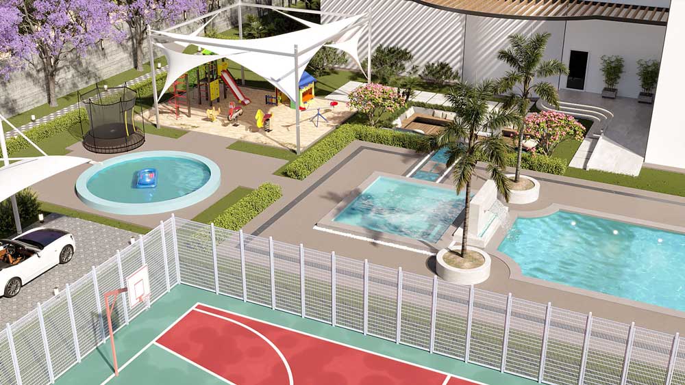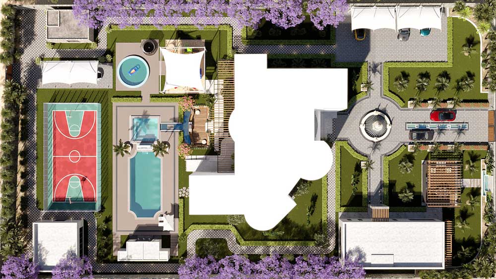 The Royal Landscape is designed not just for visual appeal but also for functionality, offering spaces for recreation, relaxation, and entertainment. With features like a multi-purpose sports field, a children’s play area, and a glass-walled gym overlooking the lawn, the estate perfectly balances classic aesthetics with modern-day usability. It is a timeless sanctuary that reflects the elegance of classical design enriched with a touch of Omani culture.